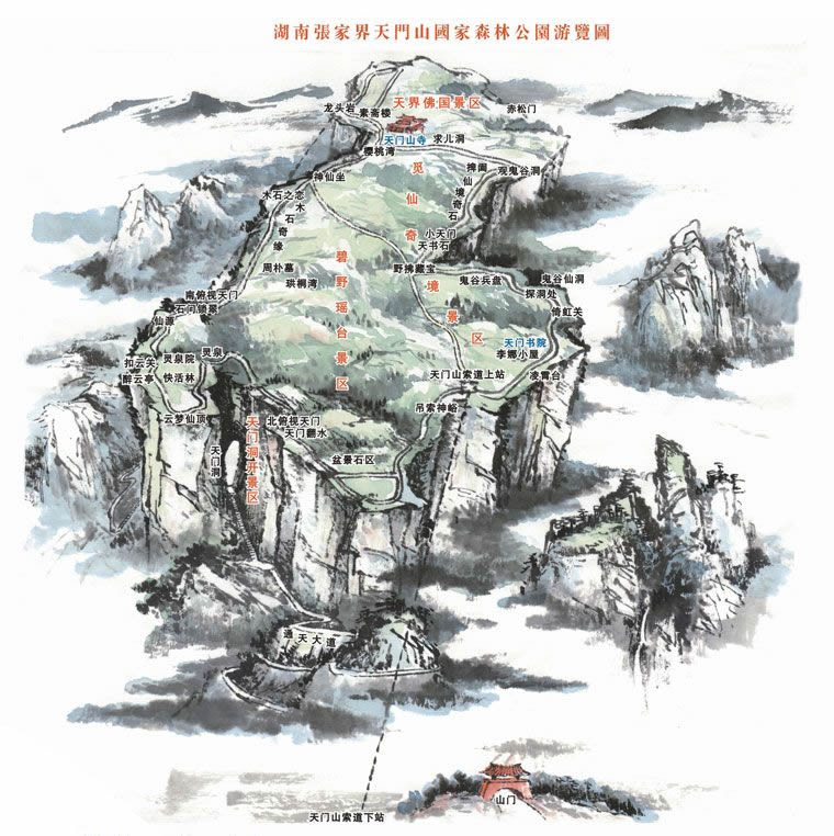 現(xiàn)在位置:張家界旅行社->交通指南->旅游地圖 -> 天門山國(guó)家森林公園游覽圖_天門山旅游圖
