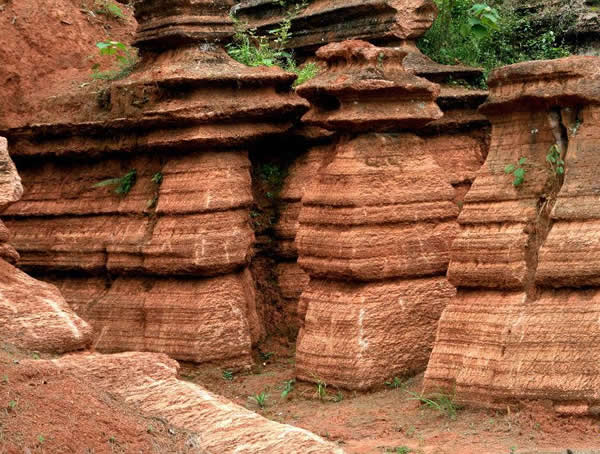 這些石柱不但顏色各異,而且大小不等。有的高達(dá)七、八米,而有些則像半埋于地下的巨獸骨架。一位村民告訴記者,現(xiàn)在石林沒有以前壯觀,都長(zhǎng)渣子(灌木)了。原因是由于山頂樹木減少,雨水將泥土帶下山,很多石頭都被埋在土下,后來這些地方都開墾了農(nóng)田,石林也被永久覆蓋。