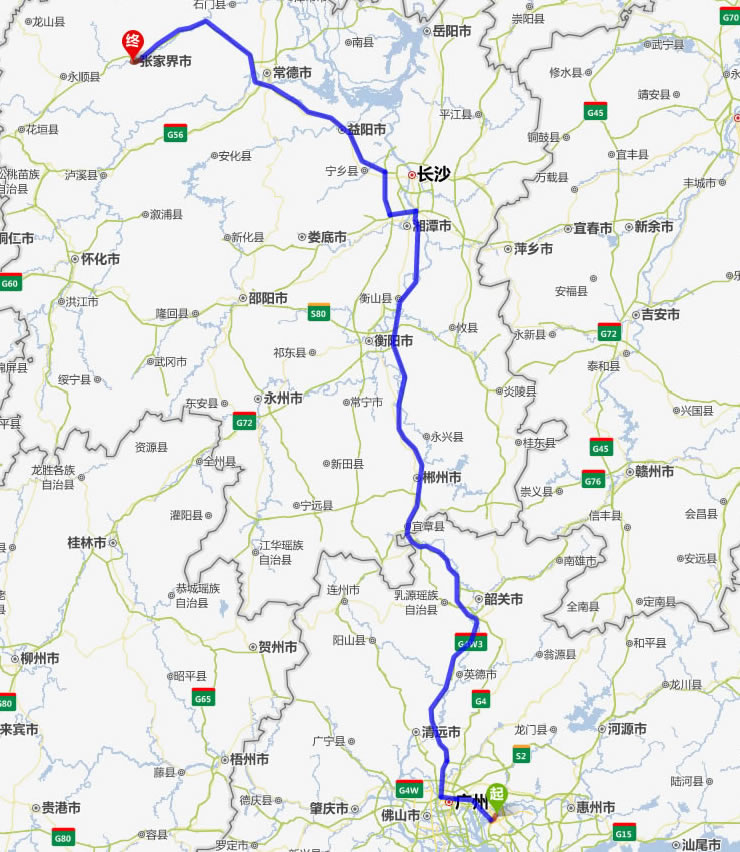 嘉興去張家界自駕車自助游線路圖全程高速):