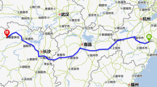 仙居去張家界自駕車自助游線路圖全程高速):