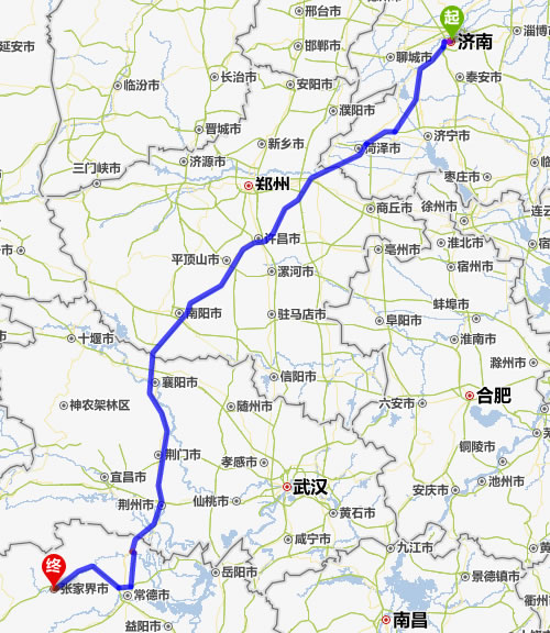 濟南去張家界自駕車自助游線路圖全程高速):