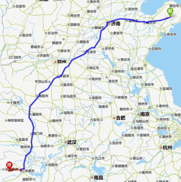 萊陽(yáng)去張家界自駕車(chē)自助游線路圖全程高速):