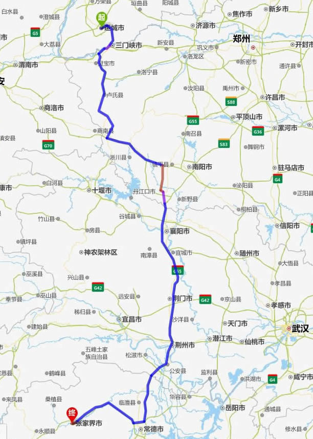 運(yùn)城去張家界自駕車自助游線路圖全程高速):