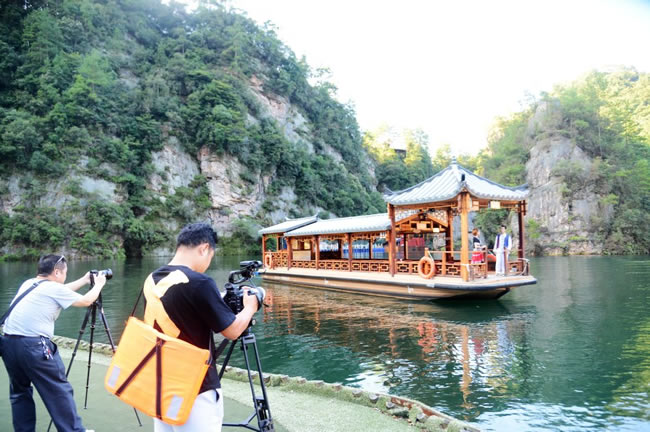 在武陵源期間,攝制組一行先后對武陵源天子山、袁家界、百龍?zhí)焯荨毞搴、黃龍洞、溪布老街等自然人文景區(qū)景點進(jìn)行了立體拍攝,屆時武陵源神奇美麗的地質(zhì)地貌風(fēng)光、多彩多姿的民俗非遺文化,都將在專題片中得到很好的展現(xiàn)。