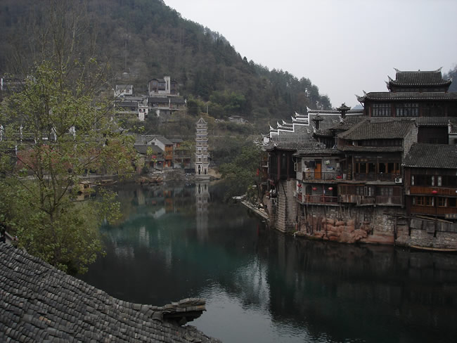 【鳳凰古城位于沱江之畔、群山環(huán)抱、關(guān)隘雄奇、碧綠的沱江依著城墻緩緩流淌,疊翠的南華山麓倒映江中,江中漁舟游船數(shù)點(diǎn),山間暮鼓晨鐘兼鳴,懸崖上的吊腳樓輕煙裊裊,碼頭邊的浣紗姑笑聲朗朗,兩岸已有數(shù)百年歷史的吊腳樓更是別有一番風(fēng)味;順?biāo)麓┻^(guò)虹橋一幅江南水鄉(xiāng)的畫面便展現(xiàn)于眼前--萬(wàn)壽宮、萬(wàn)名塔、奪翠樓……一種遠(yuǎn)離塵世的感覺(jué)悠然而生;鳳凰--猶如“一幅濃墨淺彩的中國(guó)山水畫”】,入住酒店。